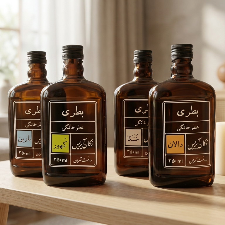 بطری ها در 4 رایحه متفاوت بارین ، خُنکا ، دالان و کَهور میباشند.